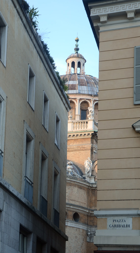 Lasciata alle spalle la periferia e la sagoma dello stadio Tardini dove poche ore prima, fortunatamente senza la mia presenza, si era consumato l’ennesimo scempio di quella che una volta era una squadra di calcio chiamata F.C.Internazionale, si arriva nella zona del centro della città emiliana, irraggiungibile con mezzi propri. Personalmente non mi posso permettere di suggerire una lista di monumenti e chiese dato che la mia visita è stata molto fugace, con lo scatto di poche foto anche a causa di una luce molto impegnativa e poco gratificante. Girando per le vie del centro ci si imbatte comunque nella Chiesa di San Giovanni Evangelista, nel Duomo ed il Battistero. Molto interessante anche Piazza Garibaldi che nel primo pomeriggio ha cominciato a popolarsi. La tappa parmense, come ho da subito ammesso, non è stata approfondita, così dopo aver girovagato a casaccio tra le decine di Chiese, Battisteri e Monasteri, tra un vicolo e l’altro, tra la moltitudine di eleganti palazzi dalle pulsantiere dorate riportanti nomi di avvocati e notai ed altrettanti negozi con le serrande abbassate recanti cartelli vendesi ed affittasi, ecco trovato un luogo non troppo turistico dove assaggiare le molteplici specialità culinarie; a dire il vero di turisti ce ne sono parecchi, ma conforta il fatto di trovare anche molte persone locali.