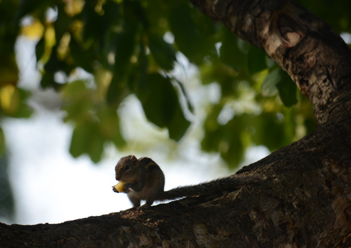 Incominciare una soleggiata e calda giornata facendo colazione all’aperto, sorseggiando il , spalmando il miele di palma sulle fette biscottate mentre a pochi metri osservi sui rami degli alberi uno scoiattolo freneticamente intento a procurarsi le sue provviste mangerecce non è scenografia abituale per molte persone, abituate a caffè e brioches al volo nel bar della stazione, con quest’ultima pietanza consumata nelle migliori delle ipotesi. DSC_1347La meraviglia che suscitano nel collettivo gli animali nostrani è ridotta ormai alla discutibile simpatia di veder qualche cane di piccola taglia forzatamente indossare il classico cappottino o gli ormai sdoganati vestitini di svariati tagli e cucito. Fatto sta che la tendenza umana ad avere sempre e comunque tutto sotto controllo ha praticamente annientato gran parte della natura selvaggia ed incontaminata dove gli animali si comportano da tali, aggressività e pericolosità annessi e non da creature della Walt Disney che nel umanizzarle si è resa costretta ad eliminarne tutti i comportamenti nella nostra cultura considerati violenti, censurando così nell’immaginario dei bambini le abituali e crude scene faunistiche che altro non sono che leggi di sopravvivenza.