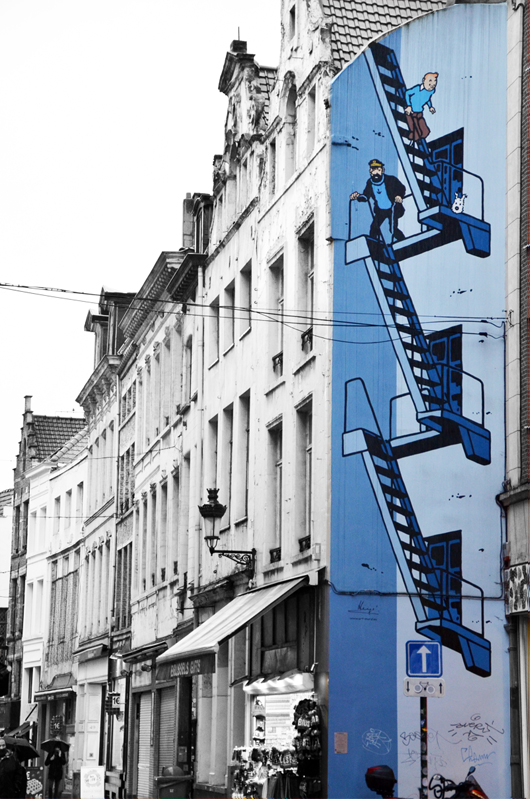 Nel mix di arti moderne ed antiche non possono sfuggire all’occhio e non piacere i murales dal tratto fumettistico che spesso compaiono sulle facciate dei palazzi. Dalla matita dell’artista belga Hergé prende vita TinTin che in compagnia del fido cagnolino Milou diventa il grande protagonista di piacevoli raffigurazioni in forma di murales, apprezzabili anche nel museo del fumetto e nei numerosi negozi specializzati che assieme alla cioccolata ed alla birra caratterizzano inconfondibilmente Bruxelles. Sembrerà d’esser presi per mano da questo personaggio frutto della fantasia anche durante le visite alle numerose Chiese e Cattedrali, spesso d’impronta gotica, che ergono al cielo sofisticate guglie ed importanti campanili e che alla penombra del loro interno celano ope