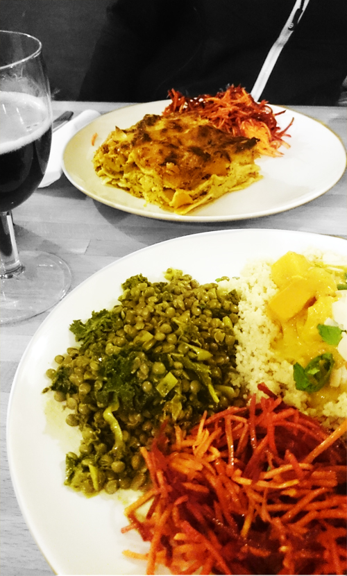 le rosse à la julienne nonché lenticchie insaporite con erbe aromatiche nell’altro. L’immancabile birra suggerita dalla presumo proprietaria dell’attivo locale è stata molto apprezzata così come il conto finale che ha contribuito a tenere già alto il buonumore alimentato da un ambiente giovane e frizzante, da prelibate pietanze con ingredienti freschi e sani ben amalgamati tra loro, uno sfizioso dolce e dell’ottima birra che a Bruxelles è ormai l’ultima delle sorprese vista la comprovata bontà.