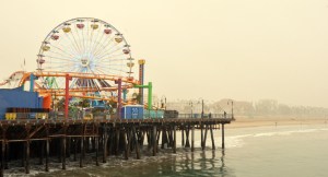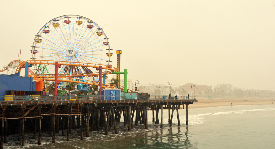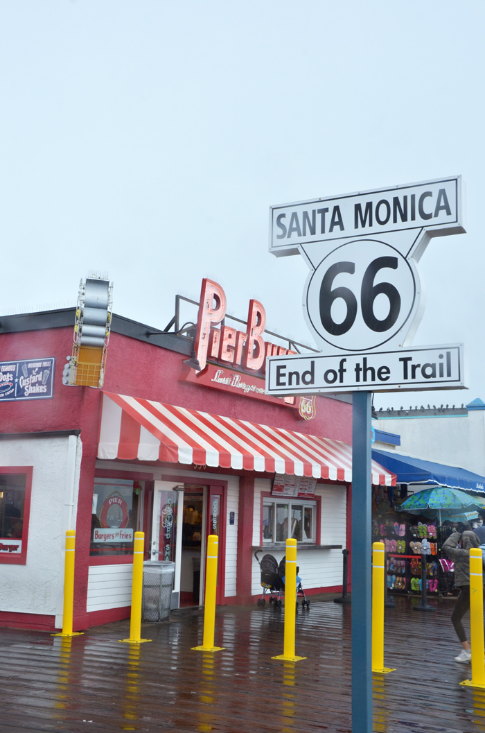 L’ombrello che stanno reggendo per ripararsi dalla pioggia è rigirato dal vento così che i due devono ripararsi in uno store in prossimità del cartello stradale che indica la fine della Route 66. Scattano alcune foto mentre le nuvole si appropriano definitivamente del famoso luna park che tante volte è stato protagonista delle scenografie di numerosi film. I bambini approfittano del maltempo per riempire la sala giochi. Loro due si siedono invece a consumare un hamburger all’interno di un locale e, tra un morso e l’altro al panino farcito, si scambiano qualche chiacchiera. Lui progetta un altro viaggio, magari nel vecchio continente. Non è mai stato in Francia, o in Spagna. Certo nel Wisconsin non si vive male e si è vaccinati al maltempo, però passare qualche mese in Europa possibilmente al caldo sarebbe l’ideale.  Lei non si lascia trasportare dall’entusiasmo e lo invita a godersi i momenti che stanno passando a Los Angeles. Sono lì da pochi giorni e la California è ancora tutta da esplorare.
