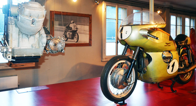 DSC_0474Ancora adesso il Museo Moto Guzzi è piacevole ed istruttivo da visitare, perché pulsa umanità e passione, elementi fondamentali che rendono gli oggetti animati, che trasmettono carattere alle cose che assieme al sacrifico e volontà superano record impensabili.