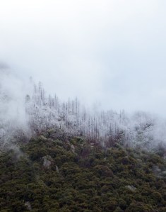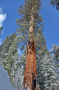 La cima delle sequoie è annebbiata dalle nuvole che con lentezza si adagiano sulla montagna. La neve ha imbiancato il paesaggio ed attutisce i rumori esterni. Il passo felpato di un cerbiatto fa capolino alla base di uno degli alberi del parco. Cerca dell’erba da brucare. Alza la testa, rimane immobile per qualche secondo e poi scompare tra la vegetazione. Turisti curiosi si intrufolano tra i sentieri osservando le giganti piante nella loro infinita altezza. Lo sguardo segue il maestoso tronco di legno dai riflessi arancioni illuminato da raggi di sole che si fanno spazio tra i rami dell’albero ed i disegni delle nuvole. Un giovane arbusto alto appena ventiquattro metri chiede al suo vicino spiegazioni riguardanti il luogo dove si trovano ed il perché. In questi ultimi duecentotrenta anni sono numerose le volte che si è rivolto ai suoi vicini. Attorno al suo tronco piccoli individui colorati lasciano delle impercettibili impronte che nemmeno degnano la sua attenzione. Il tempo per lui che vivrà forse più di duemila anni scorre in modo proporzionato. Al solito, le risposte che riceve dai compagni del fitto bosco non cambiano. E’ una sequoia sua coetanea a prenderlo in considerazione. “Sempre le solite domande.