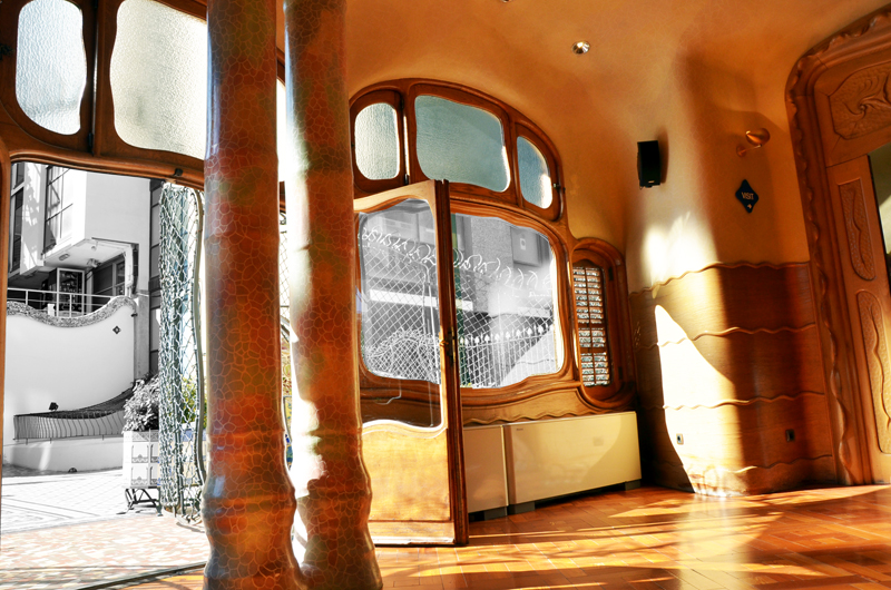 diando sistemi di luce ed audio che ad oggi sono autentici capolavori, altrettanto si può dire dell’organizzazione che cura l’aspetto turistico e che si muove anch’essa intelligentemente occupandosi di ridurre al minimo l’eventuale disagio delle masse di curiosi e studiosi; riuscendoci in maniera impeccabile. A Barcellona non c’è luogo ove non si possa usufruire al meglio della tecnologia contemporanea, dal momento dell’acquisto dove, suggerimento, è meglio prenotare gli ingressi on line precedentemente, alla visita stessa, con l’aiuto di interazioni multimediali pratiche ed intelligenti. Addentrandosi nella Casa Batllò, ennesimo capolavoro del maestro Gaudì, oltre a rimanere basiti per le soluzioni architettoniche stravaganti sì, ma altamente funzionali, si usufruisce di un piccolo monitor dalle dimensioni di uno smartphone che assolve la funzione di audio guida e che all’occorrenza diventa uno spioncino sul passato. Puntando l’oggetto in direzione desiderata come se dovessimo scattare una foto, sullo schermo comparirà la sequenza visiva originale risalente all’epoca o ciò che scorreva nella mente di Gaudì durante la creazione dell’oggetto. Un ulteriore attraversamento del tempo tridimensionale in quello che già possiamo definire viaggio surreale.