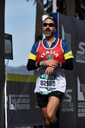 Morale della favola a mio avviso la maratona di Los Angeles è più orientata alla celebrazione festaiola dello sport piuttosto che all’agonismo duro e puro. Il percorso, come detto, non attrae più di tanto i top runner che preferiscono concentrarsi su altre gare ma questa non è una critica negativa, anzi. In questa maratona emerge ancora di più il lato umano delle persone più semplici con le loro svariate motivazioni che, non solo agonistiche o economiche appunto, popolano per un giorno tutte le strade di LA. Ad esempio mi viene in mente un massiccio ragazzo di colore che ho avuto a fianco per qualche centinaio di metri che ripeteva ad alta voce a se stesso ininterrottamente “You can, you can, do it, you can”. Non so se avevamo superato il 5K e chissà se avrà continuato ad automotivarsi per tutti i restanti 37K. Oppure due ragazze visibilmente fuori forma che alla mezza mi hanno superato con nonchalance ad un ritmo vertiginoso tanto da farmi sentire una completa nullità. Giuro. Dopo un po’ le ho ritrovate che camminavano sfatte; intanto fino al 21K hanno davvero corso veloci nonostante la loro stazza.
