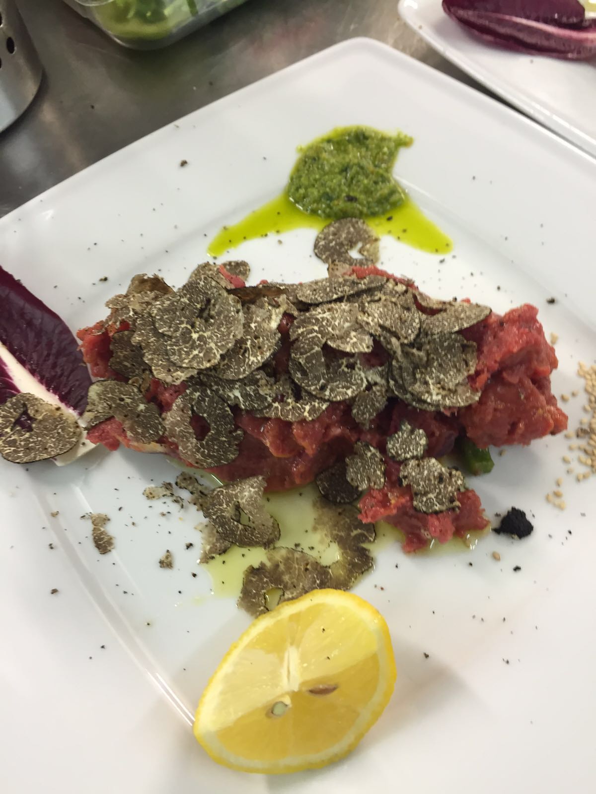 E’ tempo di secondi piatti che, come anticipato, possono variare da cibi tradizionali come le rane, lumache e piccoli pesci di fiume o rimanere sul caratteristico come lo spettacolare asado di cavallo al forno, la battuta di fassona femmina alla tartar con tartufo o una tagliata di manzo con radicchio e cacio.