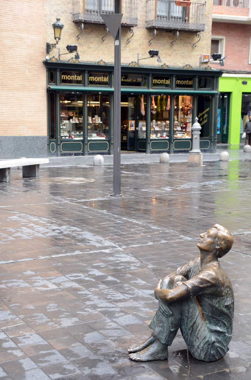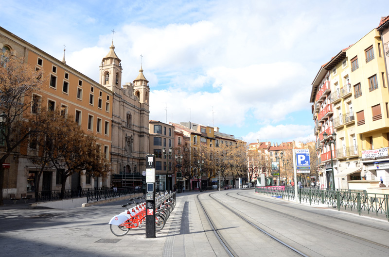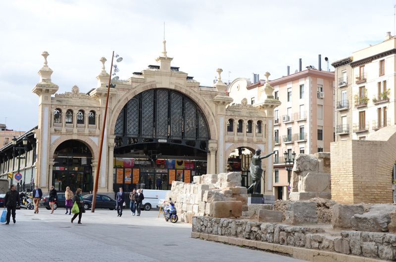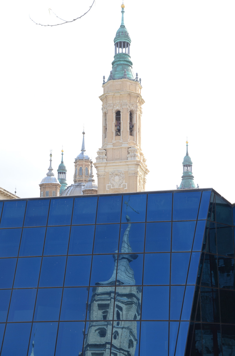 Il tragitto che si percorre è l’inequivocabile biglietto da visita del capoluogo: la periferia presenta numerosi capannoni di aziende non troppo in salute, in evidente stato di decadenza europeistica e l’avvicinamento alla ciudad si arricchisce di opere futuristiche costruite in occasione di Expo 2008. Il tema allora era Acqua e sviluppo sostenibile ed in effetti quello che rimane dei progetti ce lo ricorda: fanno acqua da tutte le parti. L’immagine di trascuratezza è notevole e sicuramente non facilitano sentimenti positivi al turista che lungo il tragitto tra le distese pianure vede scorrere immagini di sculture che consistono in un aggrovigliarsi di tubi dai colori ormai sbiaditi o rotaie sospese nel vuoto che veicolano navette da centri commerciali a luoghi non ben definiti. Anche il contesto periferico non promette nulla di buono con i palazzi in evidente stato di degrado e l’intervallarsi di negozi con le serrande definitivamente abbassate a supermercati cinesi piuttosto che attività sull’orlo del fallimento.