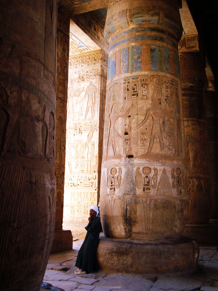 Continua a soffiare nelle vele delle feluche di oggi lo stesso vento che gonfiava le imbarcazioni di millenni fa, vento che pare non accorgersi del cambiamento costante che rende il mondo ogni giorno un po’ più grigio e sporco; scorre il Nilo dove nelle sue acque si sono abbeverate e specchiate migliaia di volti diversi, animali addirittura estinti, ricchi mercanti o la stessa regina Cleopatra.