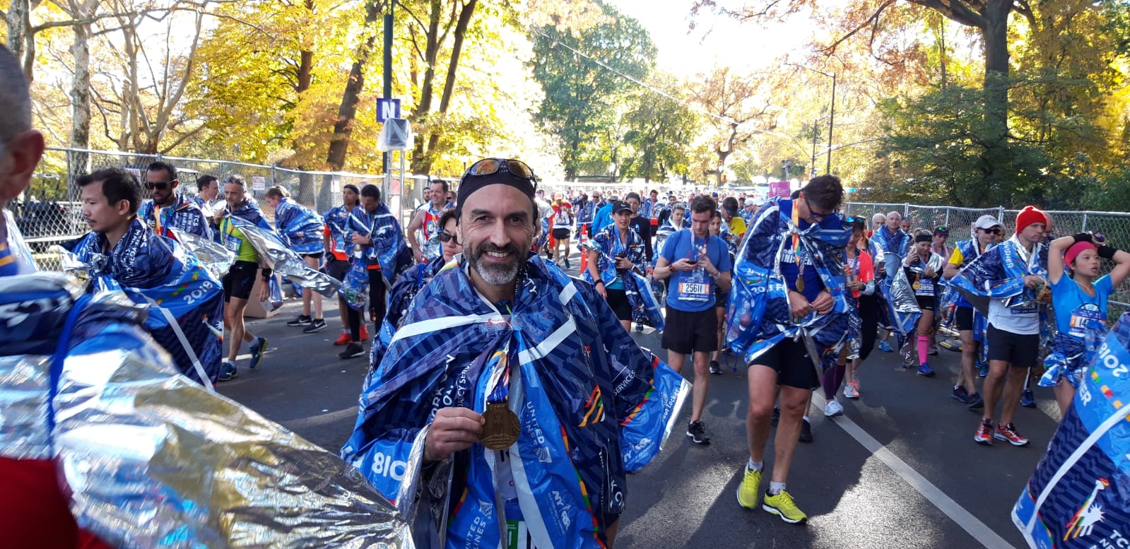 Una carica emozionale fortissima mi dà un ulteriore spinta per aumentare il ritmo. Stavolta mi metto a correre seriamente senza dedicare tempo a dare il cinque ai bambini ai bordi delle strade o concentrarmi sulle meraviglie che mi circondano. Mancano circa 10K per entrare a Central Park e mettere fine alla gara più suggestiva che ho corso fino ad ora. È bello accelerare il passo alla fine perché c’è la cosiddetta raccolta dei cadaveri. Quelli che hanno dato tutto nella prima parte di gara e che ora sono in panne. Ne supero davvero tanti ma per recuperare il tempo perso nei primi 30K dovrei viaggiare alla velocità di Kipchoge. Vengo colto dai crampi quasi all’altezza del punto dove l’anno precedente mi ero posizionato per fare foto agli atleti. Impreco, rallento, dialogo con i muscoli, penso alla fortuna che ho questa volta ad essere dalla parte giusta della transenna e mi riprendo in fretta. L’ingresso a Central Park è spettacolare e l’incitamento che non è mai mancato per quasi 35K è commovente. Trovo le ultime motivazioni nella sfida con un altro italiano. Entrambi ne traiamo beneficio tagliando il traguardo con dignità.