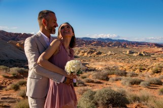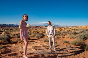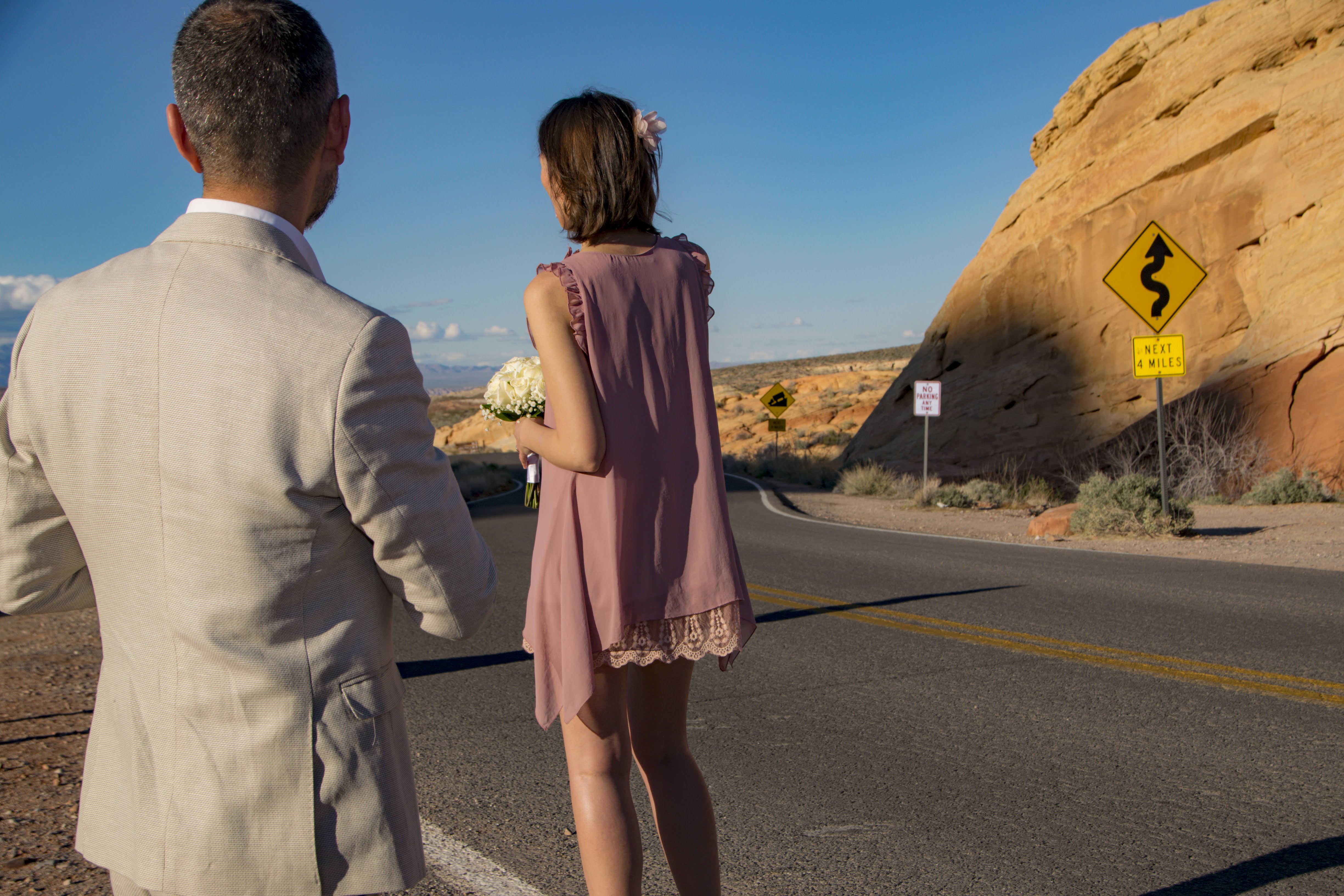 Durante l’ora e mezza di viaggio che stiamo affrontando io e M riavvolgiamo il nastro che ci ha portato fino a lì; verifichiamo che le promesse che diremo non saranno le stesse. Spesso ci capita di pensare o dire le stesse cose senza volerlo. Ci incoraggiamo e ci togliamo le ultime ansie da prestazione. Lei scopre di aver dimenticato i trucchi in albergo ma è ovviamente troppo tardi per trovare soluzioni alternative. Certo, come ci aveva insegnato un caro amico in Giordania, servisse solo la terra rossa c’è un deserto a disposizione per procurarsela. Peccato che non ci abbia mai svelato i metodi naturali per produrre rossetto e contorno occhi. Se esistono. Il panico, perché per una donna trovarsi senza trucco il giorno del matrimonio è il peggior incubo della vita, svanisce quasi del tutto quando sdrammatizzo dicendole che avrà una storia nella storia da raccontare. Probabilmente evita di mandarmi a fanculo proprio perché è il nostro giorno. Intanto fuori dai finestrini oscurati scorrono le immagini del meraviglioso parco naturale chiamato Valley of Fire, nella provincia di Overton, nello Stato del Nevada.