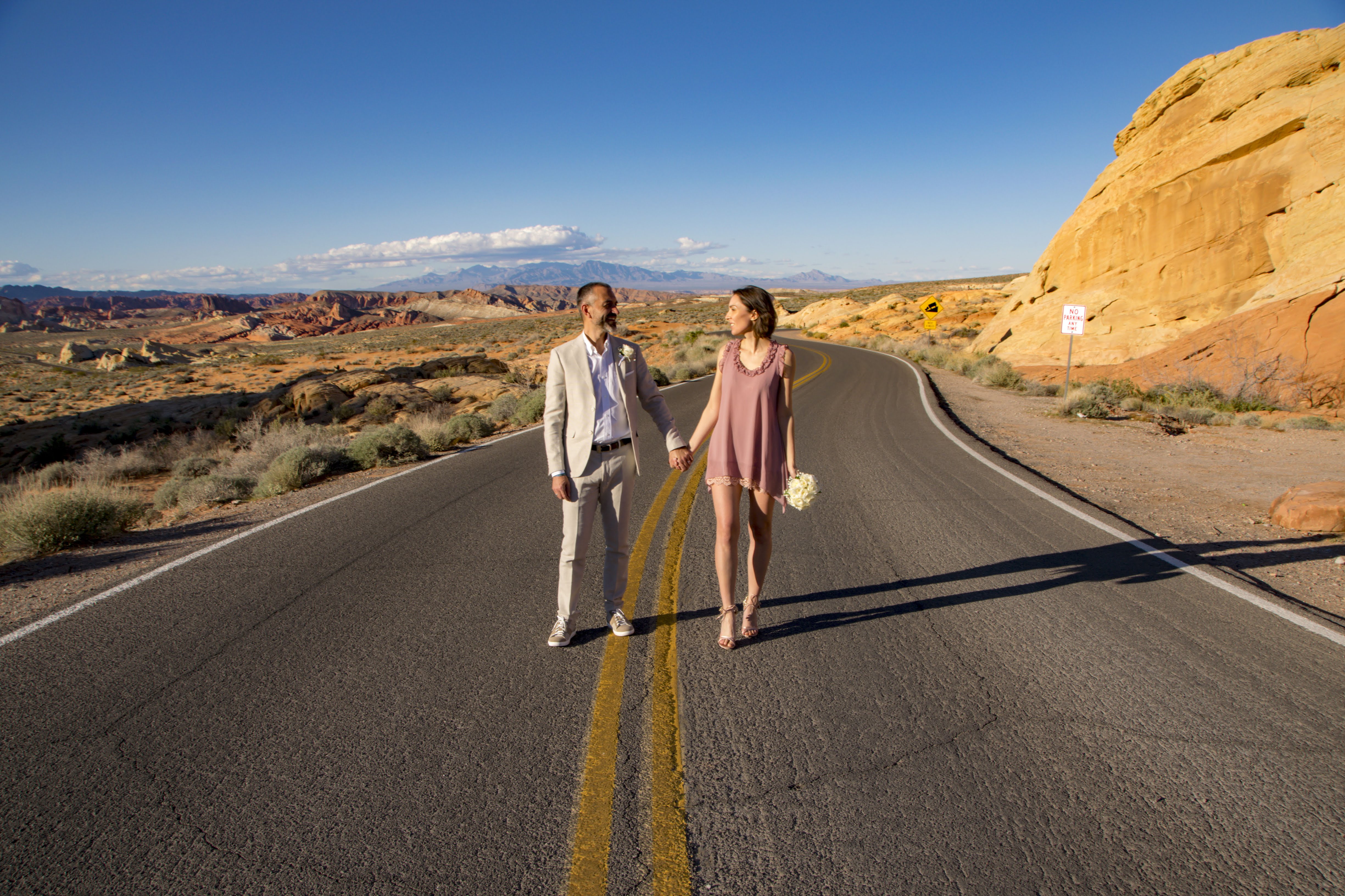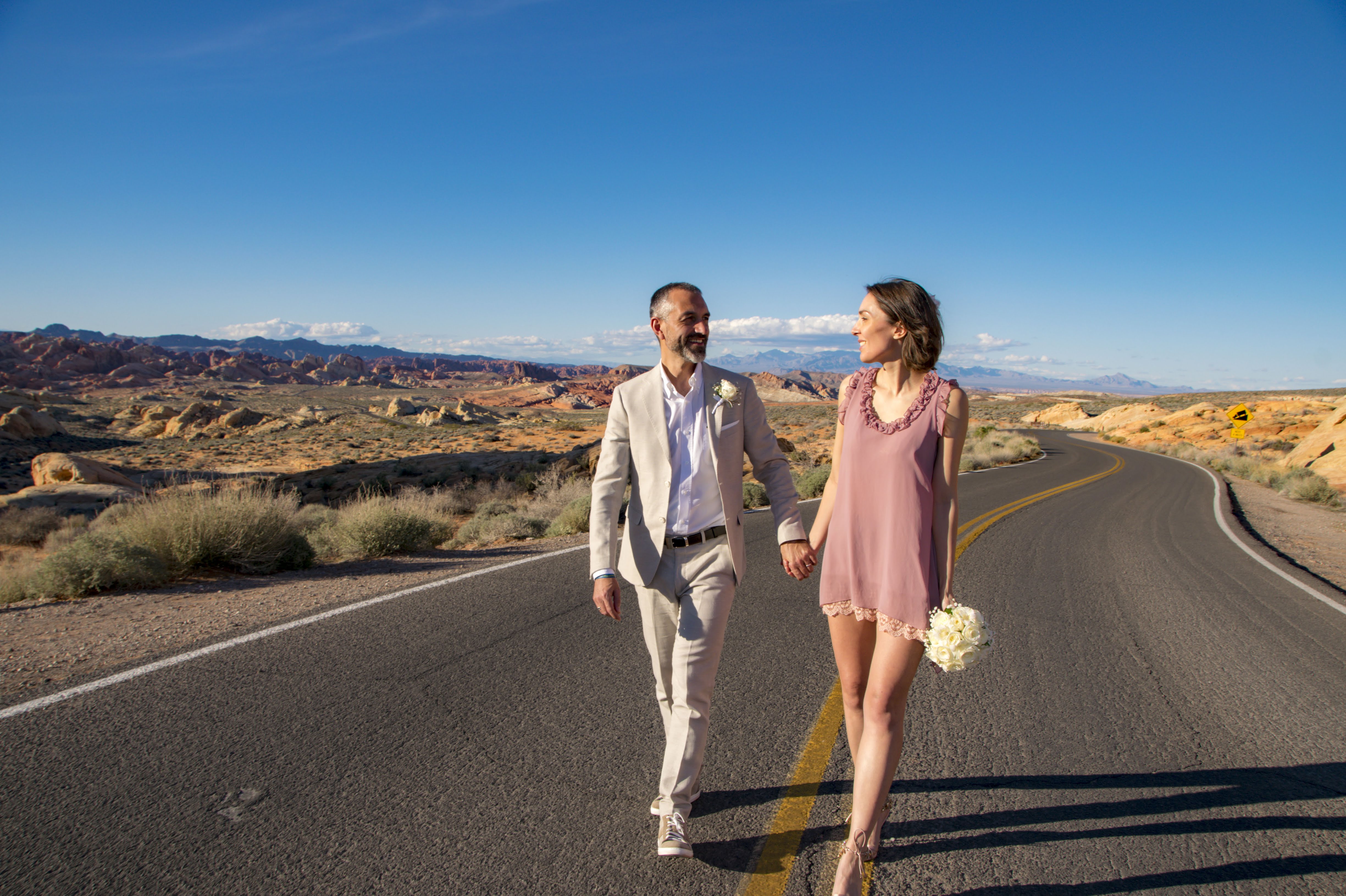 Nelle prime ore del mattino mi trovo nell’ascensore del hotel. Sto scendendo. Lo condivido con due ospiti della stessa struttura con i quali scambio due battute. Deve essere bello andare a correre a Las Vegas a quest’ora, dice un po’ sorpreso uno dei ragazzi. Il campanellino del piano suona, si aprono le porte, saluto ed esco ad allenarmi. Una piccola corsetta per tenermi in forma in vista della maratona di Los Angeles a cui parteciperò tra sei giorni. Mentre percorro la Stewart Ave. mi guardo in giro, ascolto musica, penso che tra qualche ora passerà l’autista a prendere me e M per portarci alla Valley of Fire, il luogo che abbiamo scelto per sposarci. Molte persone hanno ironizzato benevolmente sulla scelta del luogo, magari citando improbabili scene di film in cui il celebrante è un sosia di Elvis e gli sposi sono completamente sfatti; altri hanno probabilmente lasciato libero sfogo a commenti meno amichevoli alle nostre spalle. Fa parte del gioco. D’altronde basta fare una ricerca in rete per avere delle dritte sui documenti necessari per assolvere la parte burocratica in cui si possono leggere poche indicazioni utili ma tanti giudizi ironici a seguire. L’ironia se utilizzata in modo intelligente sta sempre bene ovunque. Se filtriamo con ironia un matrimonio tradizionale in Chiesa, ad esempio, fa sorridere il fatto che il celebrante sia un uomo vestito con la talare e parametri sacri che tanto ricordano il carnevale. L’usanza di prendersi manciate di riso in faccia è stata schernita anche dal regista Francesco Nuti nel film cult Caruso Pascoski di padre polacco. La fascia tricolore indossata dal sindaco non è altrettanto ridicola? Si sta varando una nave o inaugurando un auditorium forse? Queste considerazioni dovrebbero non dico far tacere, ma almeno far riflettere, i provinciali paladini delle verità assolute.