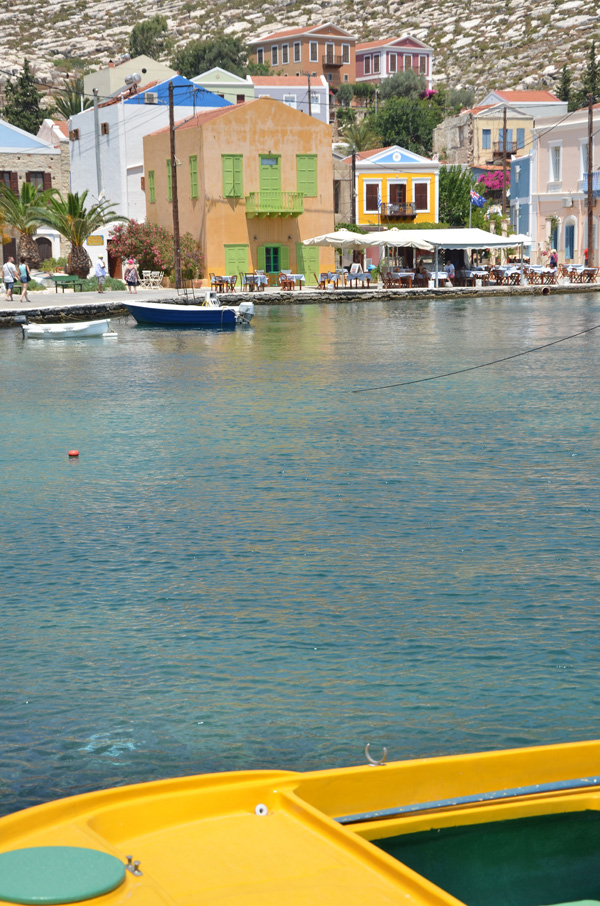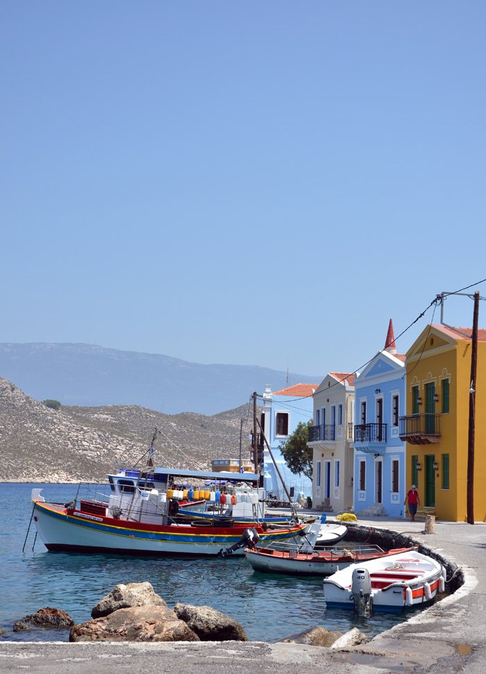 Kastellorizo al di là del passato cinematografico, si sviluppa per lo più attorno al porto principale con le solite classiche casette color pastello affacciate sul mare e decine di tipiche taverne che offrono ai visitatori intensi momenti di rilassatezza. L’isola è molto silenziosa e tranquilla così come gli abitanti che hanno dei ritmi, se possibile, ancor più blandi rispetto agli altri greci. Le ore calde della giornata contribuiscono ad abbassare ulteriormente la pressione così che anche gli ultimi neuroni scalpitanti in cerca di nuove idee finiscano per arrendersi e parcheggiarsi in qualche remoto angolino di cervello.