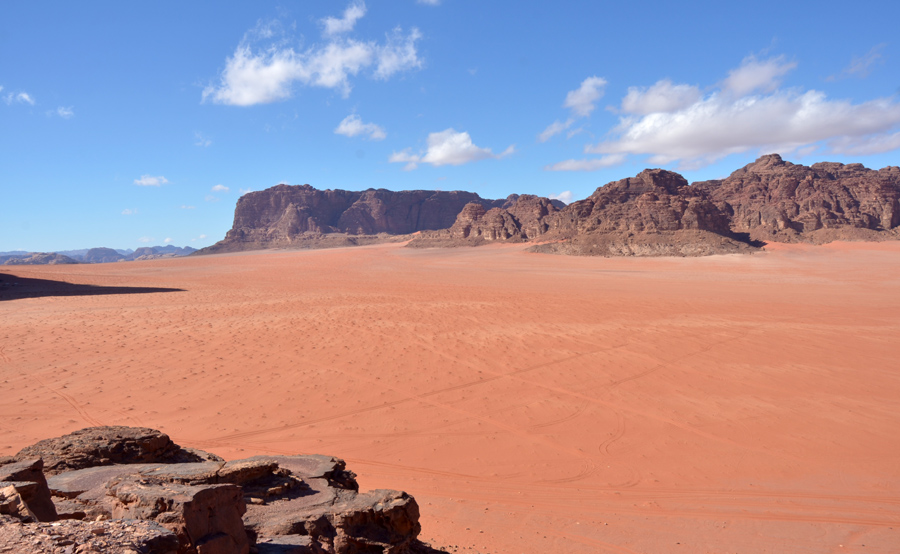Ancora una volta la direzione di Lawrence sarebbe Aqaba. Dal Monte Nebo seguirebbe le coordinate 29°Nord e 35°Est e presto arriverebbe nella sua Valle della Luna. Durante il suo cammino rincontrerebbe i popoli nomadi che nei periodi più freddi lasciano le montagne per montare le loro tende in pianura. Tra coltivazioni di pomodori e greggi di pecore. Costeggerebbe parte del Mar Morto che troverebbe di alcuni metri più basso rispetto ai suoi tempi. Prosciugato dallo sprezzo di Israele che pompa acqua dal Lago Tiberiade e dal Fiume Giordano noncurante del fatto che tra qualche decennio non ci sarà più traccia di questo leggendario bacino che, tra le varie caratteristiche, è situato a 415 metri sotto il livello del mare. Si soffermerebbe a curiosare le fabbriche che trattano il sale del mare citato nella Bibbia come mare Salato per l’appunto.