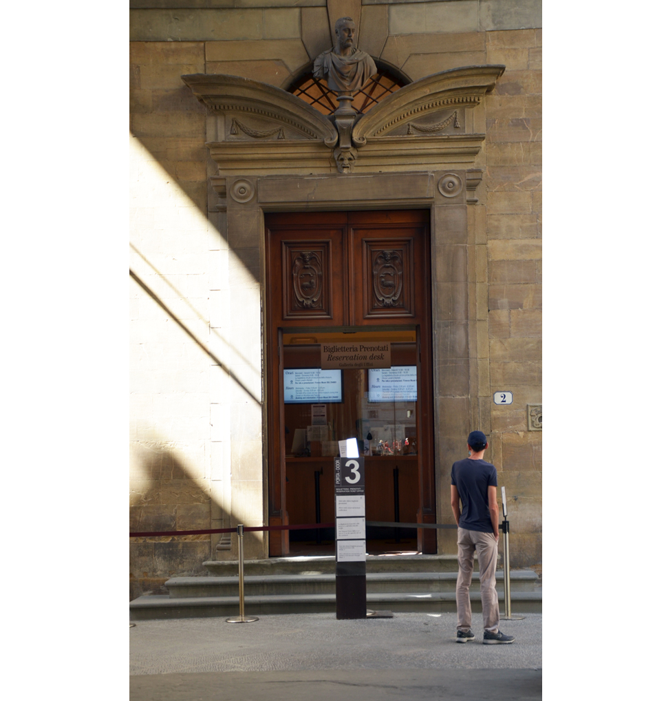 “Guardi avevo un ricordo degli Uffizi di quand’ero ragazzino. Mi ci avevano portato i miei zii che erano fissati con l’arte. La fila chilometrica, la gente accalcata. Riuscivo a scorgere a malapena i quadri appesi. Non le nascondo: un incubo. Non ho mai compreso il perché di tanta fatica per vedere qualche secondo un quadro. Sarà per quello che poi ho scelto un indirizzo economico all’Università… Aspetti ho un flash… La testa con i serpenti, di chi è che non mi sovviene?”